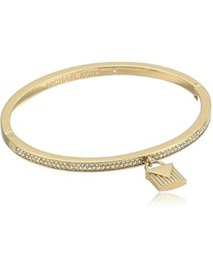Cutout with Pave MK Logo Hinge Bangle Bracelet Yellow Gold